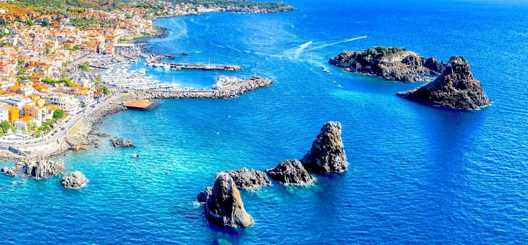 Discover the breathtaking underwater world of the Cyclops Islands Marine Protected Area with DNA Divers, your premier scuba diving center in Aci Trezza, Sicily. Nestled along the stunning Catania coastline, these legendary Faraglioni rock formations rise dramatically, immortalized in Homer's Odyssey as the boulders hurled by the Cyclops Polyphemus.